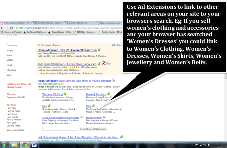 - Are you using Ad Extensions? Ad Extensions or Site Links as you may know them allow you to add 6 additional links to your site to be displayed beneath your PPC advert if you also appear within the top 3 ranks organically listed on the first page of SERP’s (Search Engine Results Pages) which you can add to your Ad’s in Google Ad Words